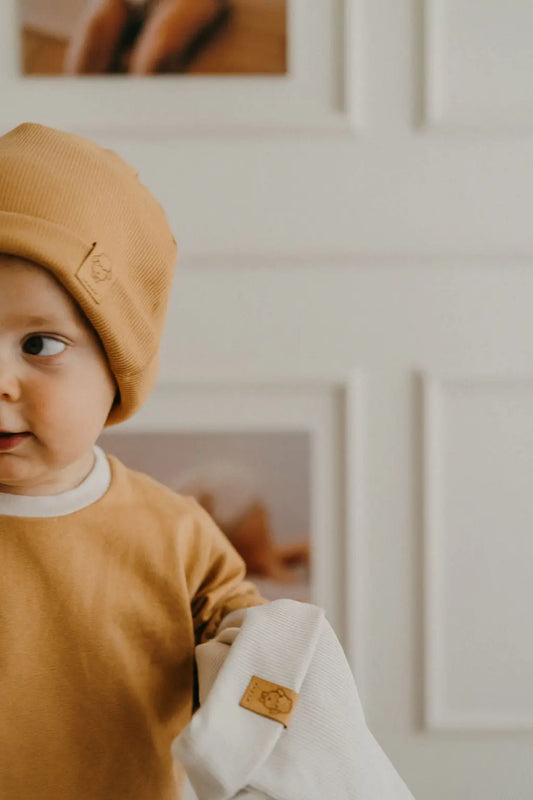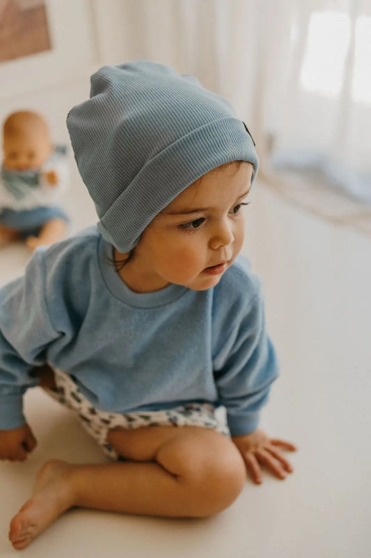 Émile, un bonnet en coton pensé pour les tout-petits, à porter au quotidien et toute l'année pour protéger la tête avec douceur et simplicité.