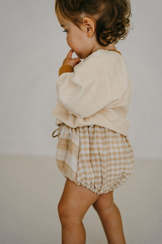 Capucine, la culotte bouffante bébé et enfant (0-4 ans) "Velours doudou sable"