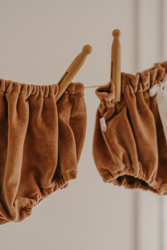Capucine, la culotte bouffante bébé et enfant (0-4 ans) "Velours doudou argile"
